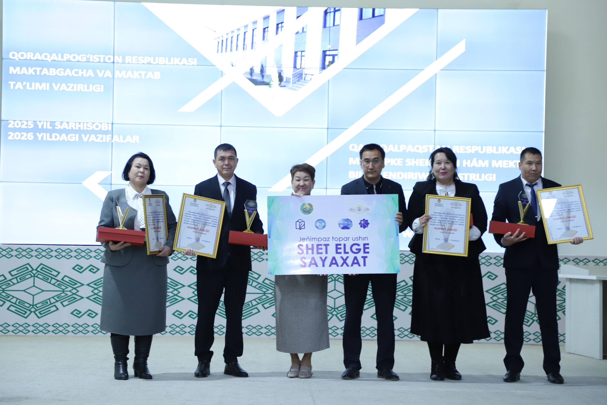 Jeńimpazlarǵa ministrliktiń “Húrmet jarlıǵı,” statuetkası hám “Shet elge sayaxat” vaucherleri tapsırıldı.
